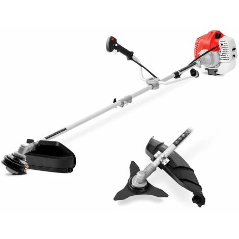 Le double guidon avec poignée ergonomique rend la débroussailleuse plus maniable sur les terrains escarpés ou lorsque des obstacles se trouvent sur le chemin, et son généreux réservoir de carburant de 1 litre permet une utilisation intensive avec une autonomie suffisante.