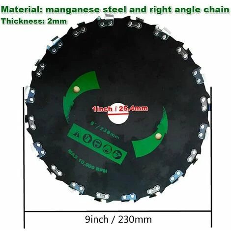 Application : Les lames de scie à chaîne conviennent à la plupart des applications de débroussaillage. Convient pour couper l’herbe épaisse, les arbustes et les jeunes arbres.