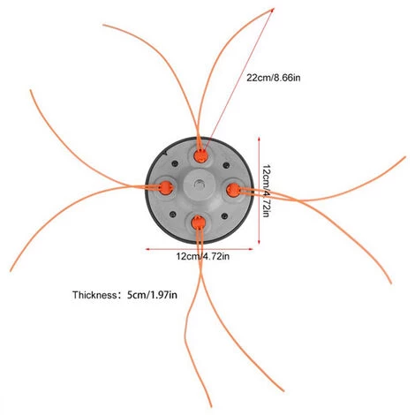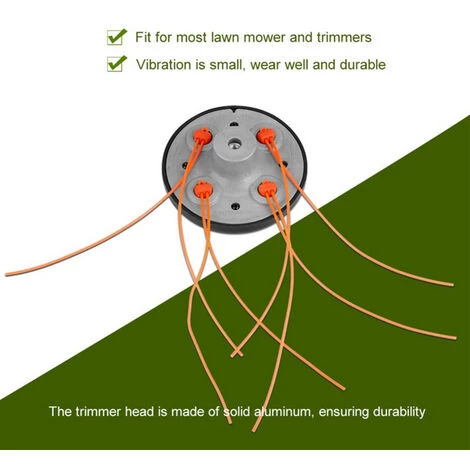 | Traits: Convient 99% des tondeuses à fil. 4 lignes de coupe. Conception légère. Facile à installer. Matériau de qualité supérieure et durable. Caractéristiques: |