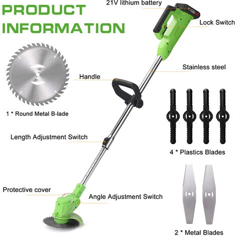 Coupe-herbe électrique sans fil, élimine l’encombrement causé par les câbles et les cordons.