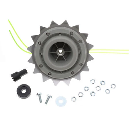 La tête mulching Shredder Line Pro offre un montage universel sur toutes les débroussailleuses (machine avec renvoi d’angle = montage d’une lame possible) et est livrée avec tous ses accessoires de montage. Cette tête révolutionnaire permet de travailler dans l’herbe haute et les petites broussailles en laissant derrière elle un résultat bien plus net qu’une tête traditionnelle grâce à la double action de son fil et des dents en acier (disponibles en pièce de rechange) qui décomposent complètement ce que vous avez coupé. La cylindrée minimum conseillée pour monter cette tête est 30cc. Résultat : Un travail plus rapide et plus efficace