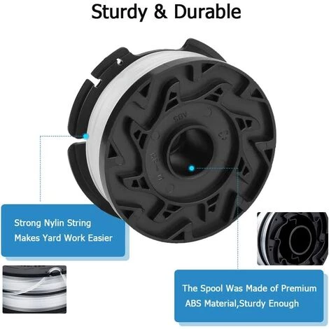 Bobine ABS de haute qualité et fil de nylon polyamide durable pour plus de flexibilité et une longue durée de vie. Les cordons de coupe offrent une zone de tonte plus large ; les cordons portables permettent des coupes rapides, coupant facilement l’herbe et les mauvaises herbes. Utilisez la force centrifuge et l’aérodynamisme pour réduire la traînée pour une coupe rapide.